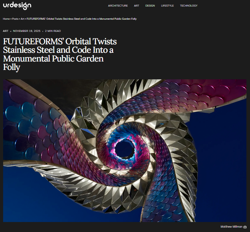 FUTUREFORMS: Weatherscape, una Copertura ScultoreaOrbital featured in Urdesign Magazine, 11/19/2025