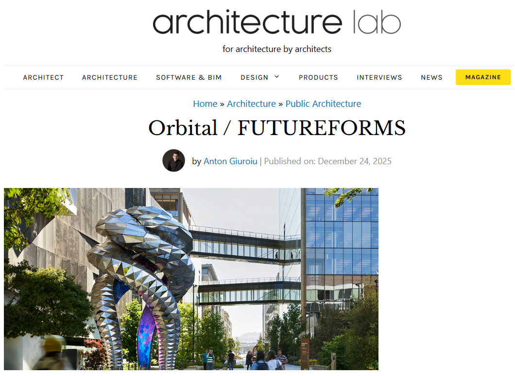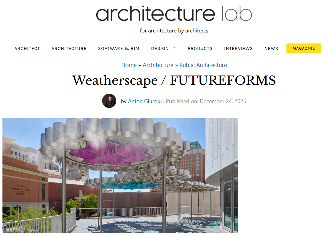 FUTUREFORMS: Transforming Public Spaces Through Digital Craftspire Design and HomeWeatherscape and Orbital featured separately in Architecture Lab, 12/24/2025